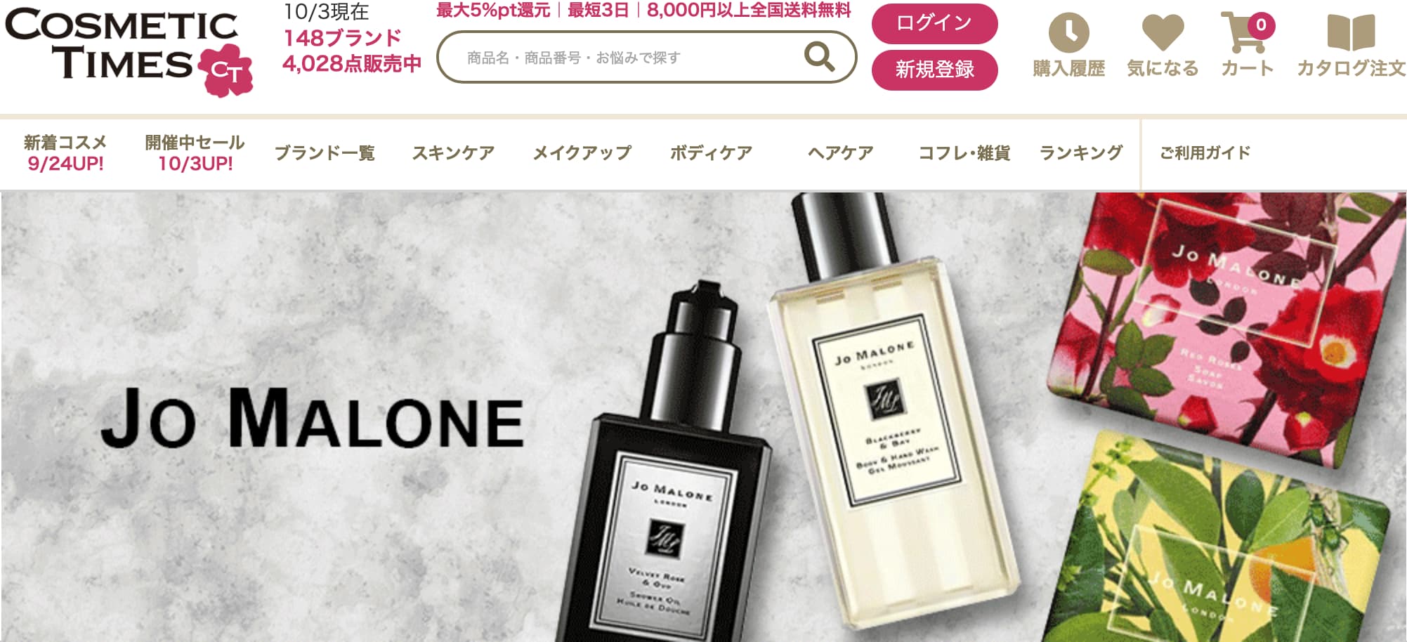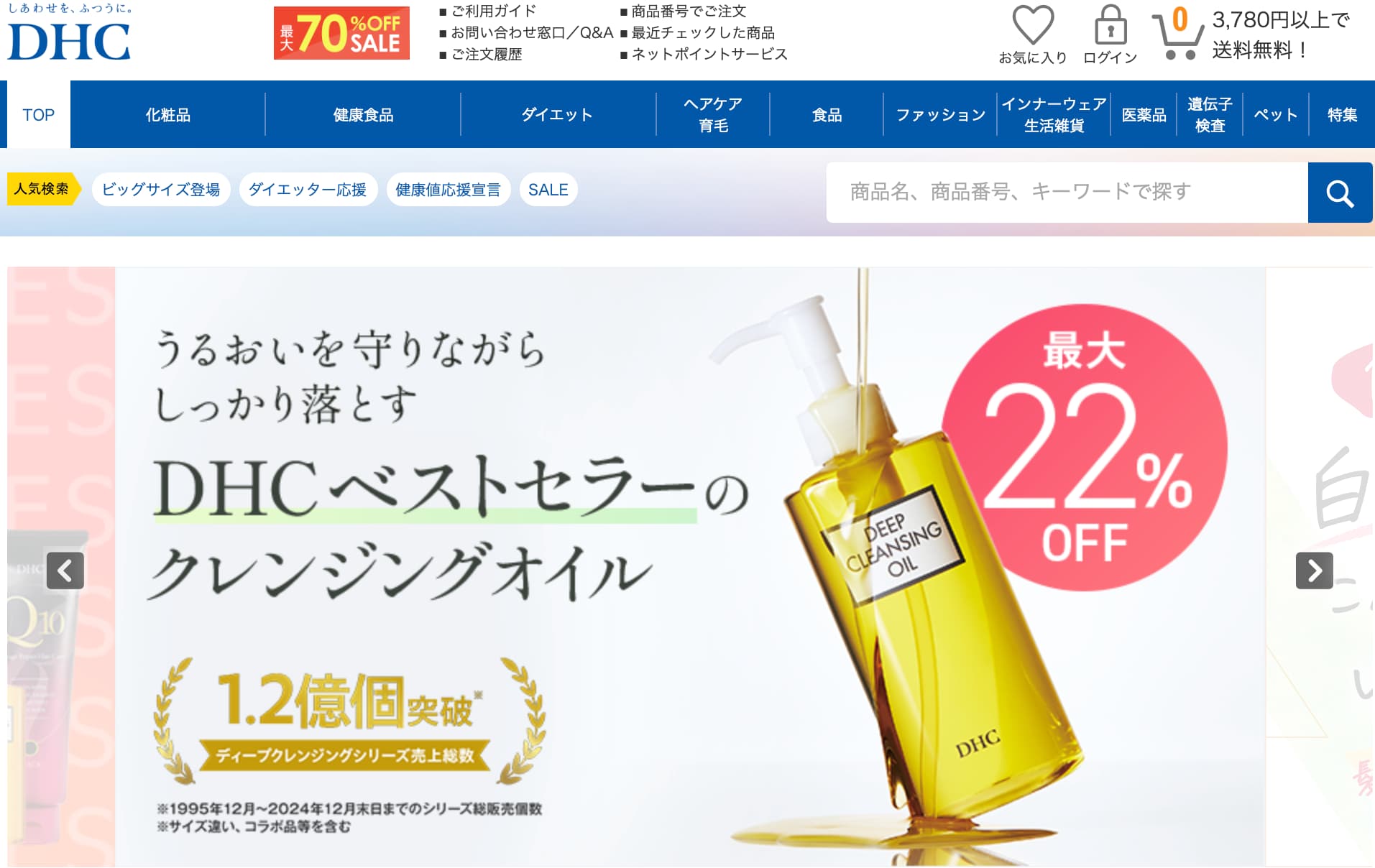 通販サイトではメイクアップ、スキンケアといった化粧品のほかにファッション、サプリメント、健康食品、ダイエット、食品、育毛、遺伝子検査キットなどを取り揃えています。